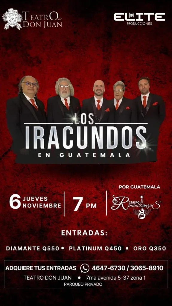 Los amantes de la música romántica y de la nostalgia tienen una cita ineludible en la Ciudad de Guatemala. La legendaria agrupación uruguaya Los Iracundos se presentará en el país para revivir sus más grandes éxitos en un concierto que promete ser una noche llena de emociones.