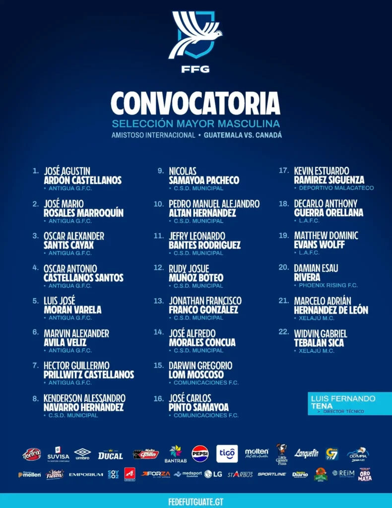 El director técnico de la Selección Nacional de Guatemala, Luis Fernando Tena, ha oficializado la lista de 22 jugadores convocados para enfrentar a su similar de Canadá. Este compromiso amistoso, que marca el inicio de la actividad internacional en 2026, se llevará a cabo el próximo sábado 17 de enero en el BMO Stadium de Los Ángeles, California.