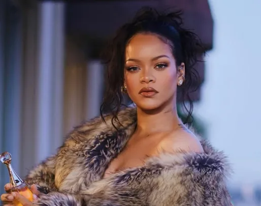 La artista de Barbados redefine el estilo retro con una gabardina de cuero y un flequillo que evoca la icónica moda de las supermodelos.