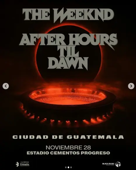 El pasado martes 30 de diciembre, han circulado en redes sociales publicaciones que aseguran que The Weeknd podría visitar Guatemala en noviembre de 2026 para ofrecer un concierto. Los anuncios han generado expectativa entre los seguidores del artista; sin embargo, hasta el momento no existe una confirmación oficial.
